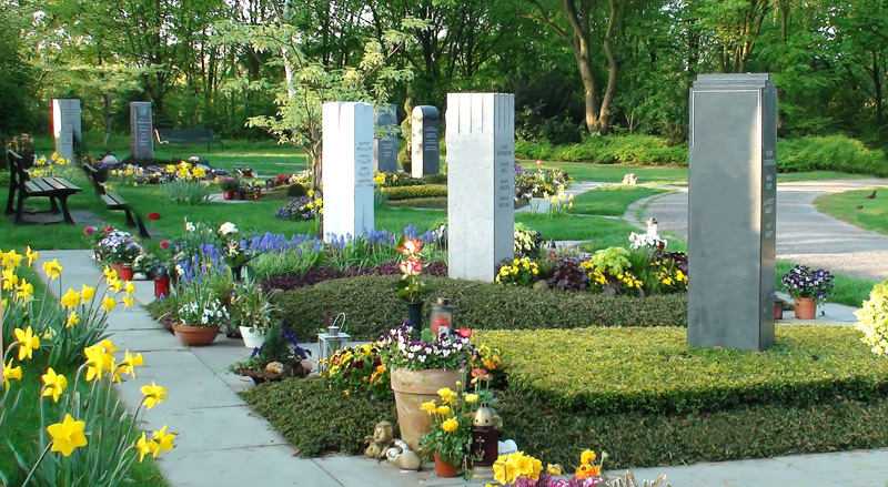 Die Urnengemeinschaftsgräber sind mit ausgewählten Pflanzen und Bodendeckern großzügig angelegt. Sie werden über einen Zeitraum von 25 Jahren dreimal jährlich wechselnd und blühend bepflanzt und ganzjährig gepflegt.